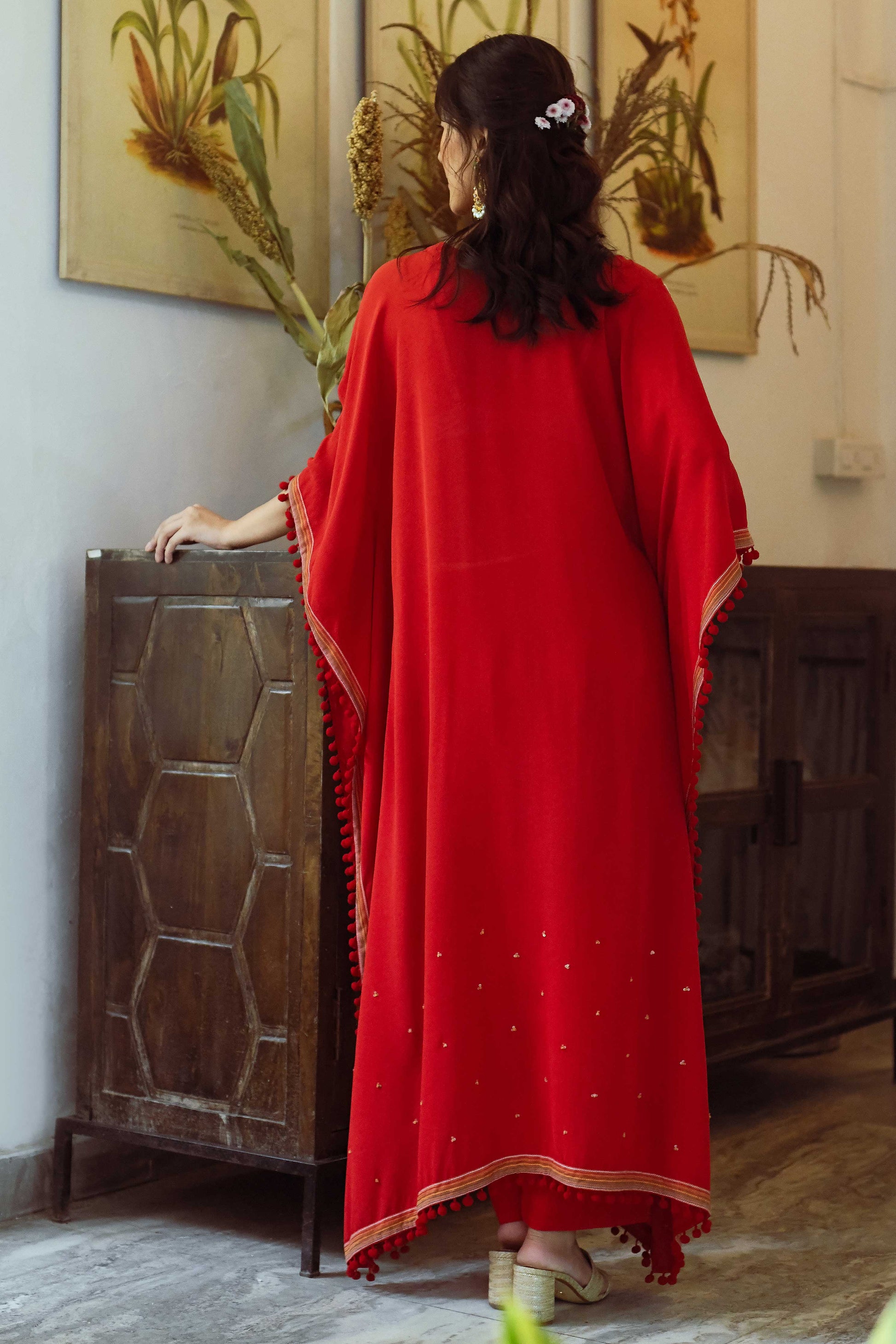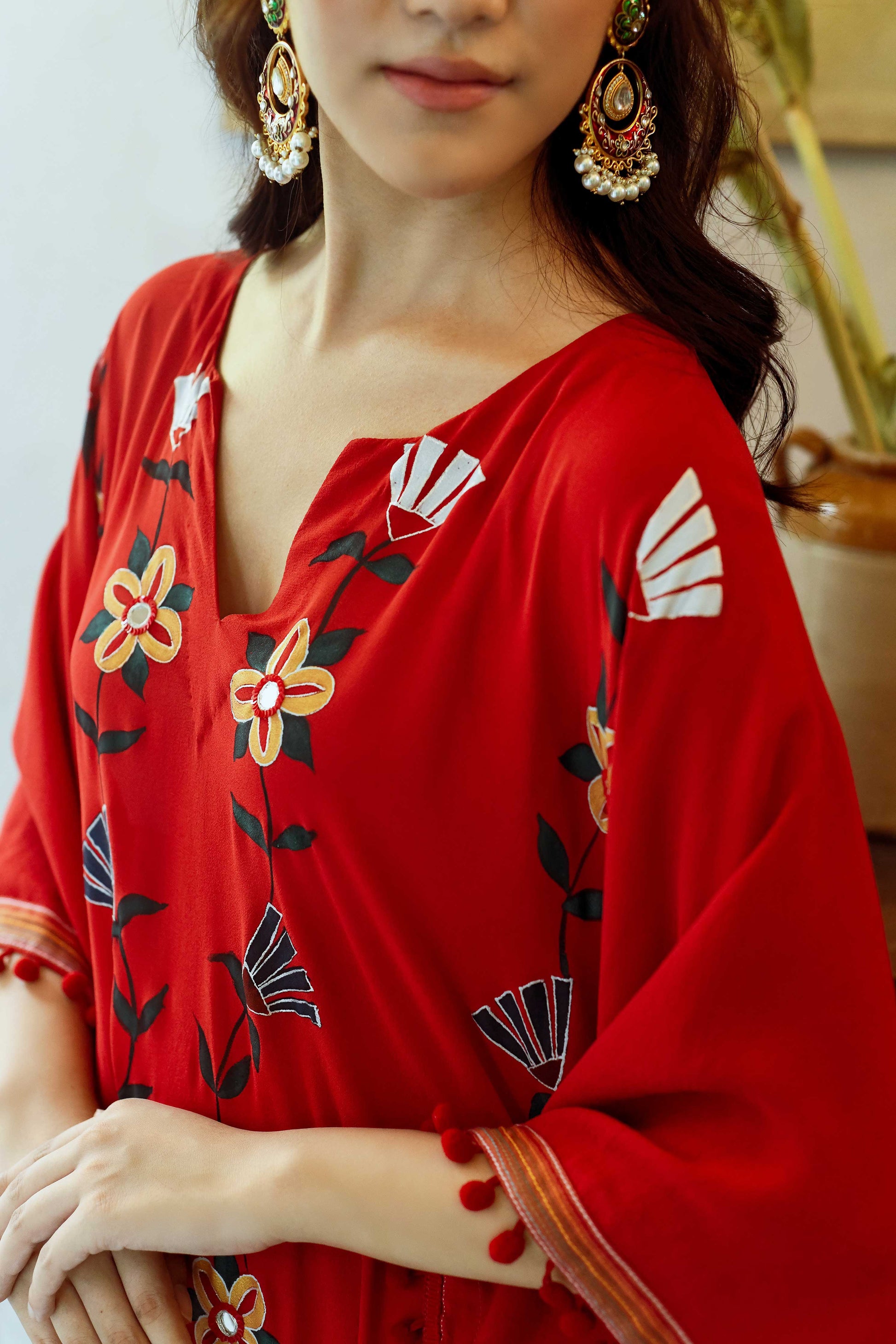 Details: Hand painted detailed floral on Kaftan.