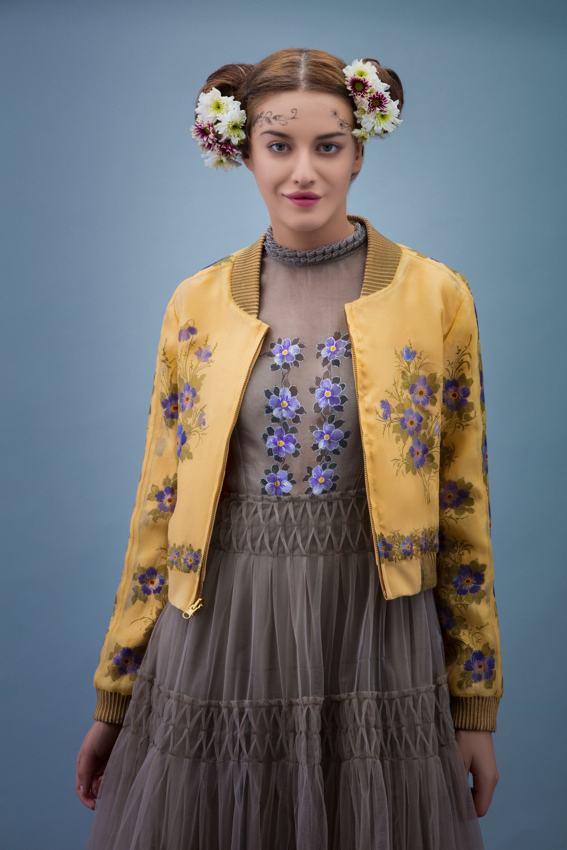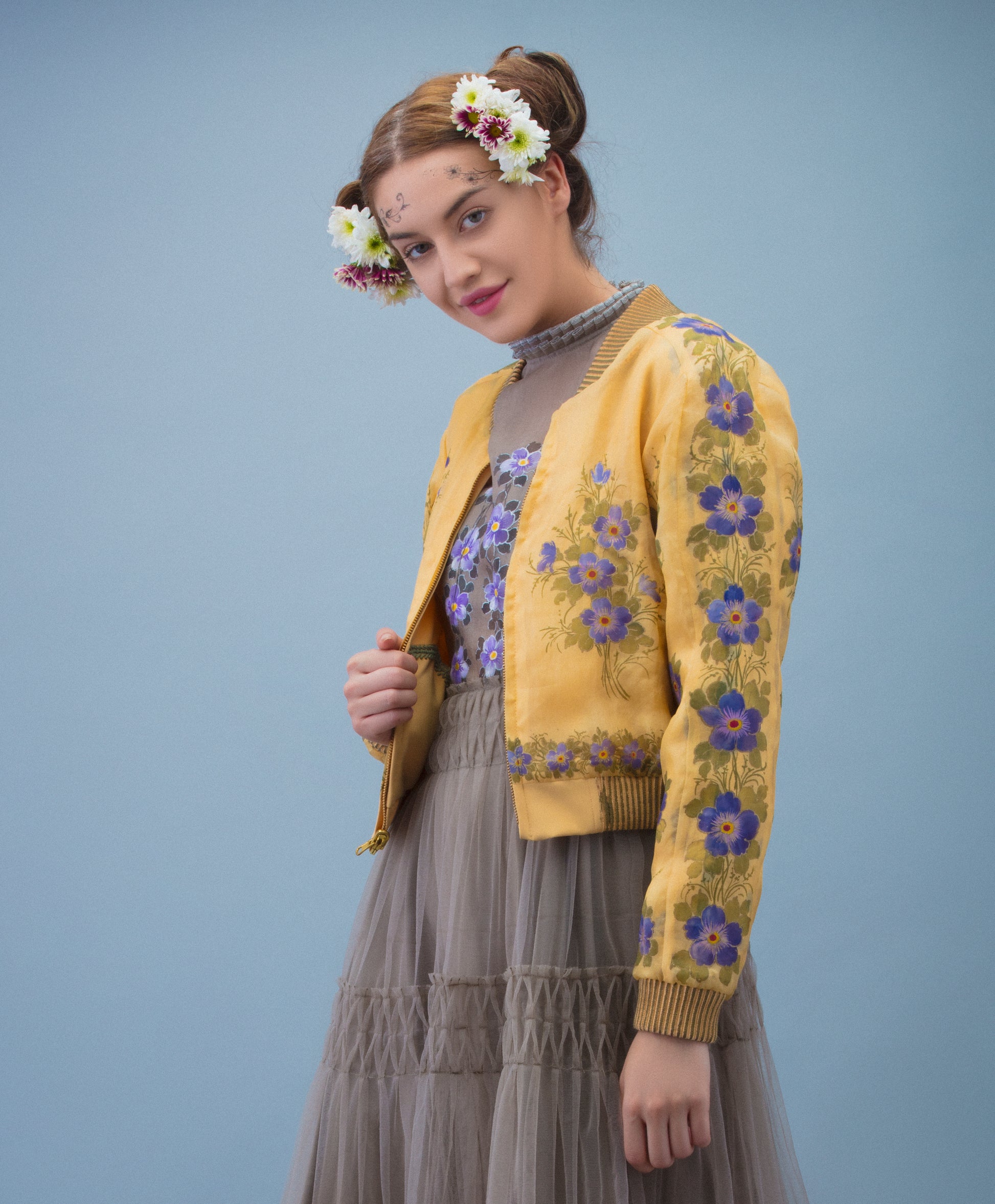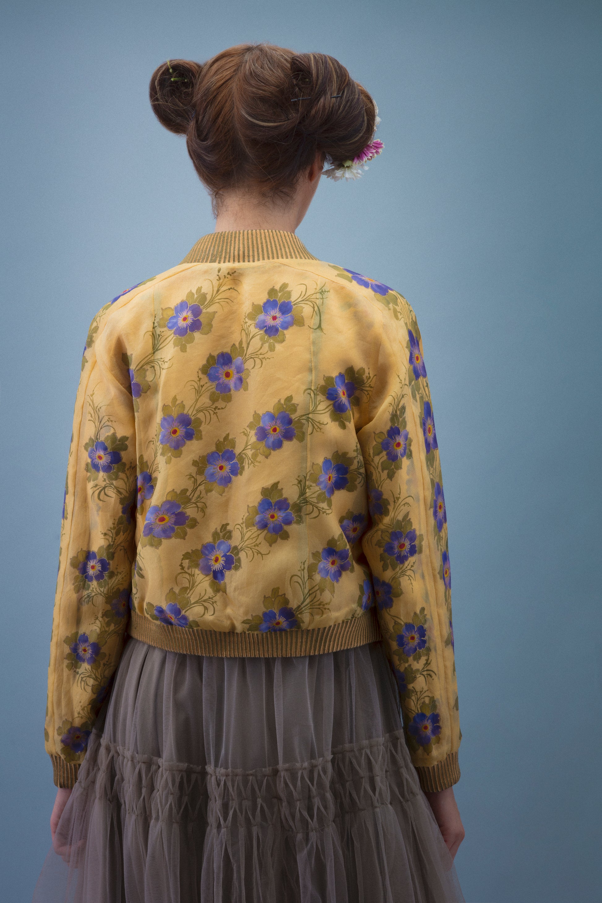 "Reversible alphonso bomber jacket, hand-painted with verbena bush."