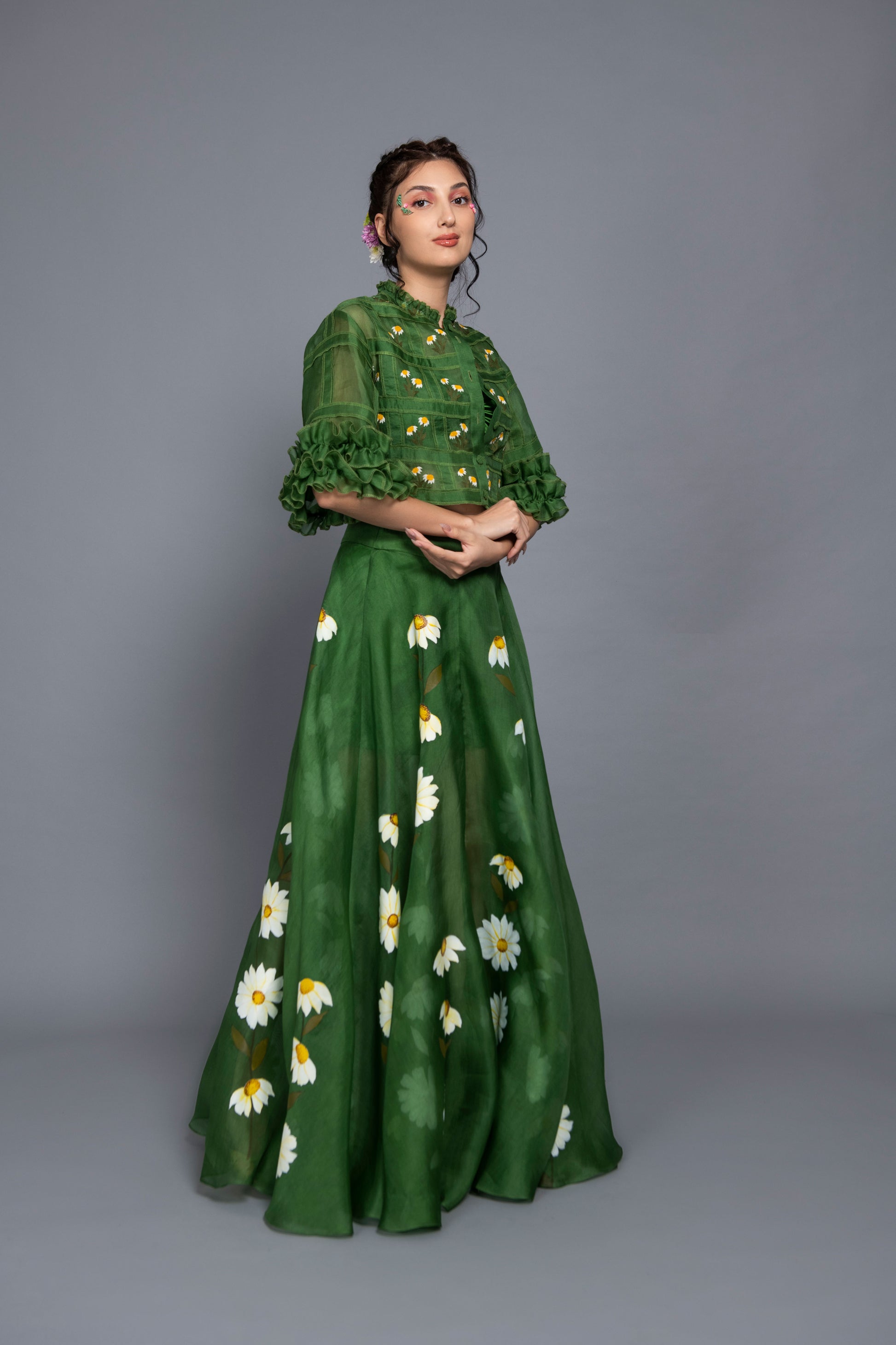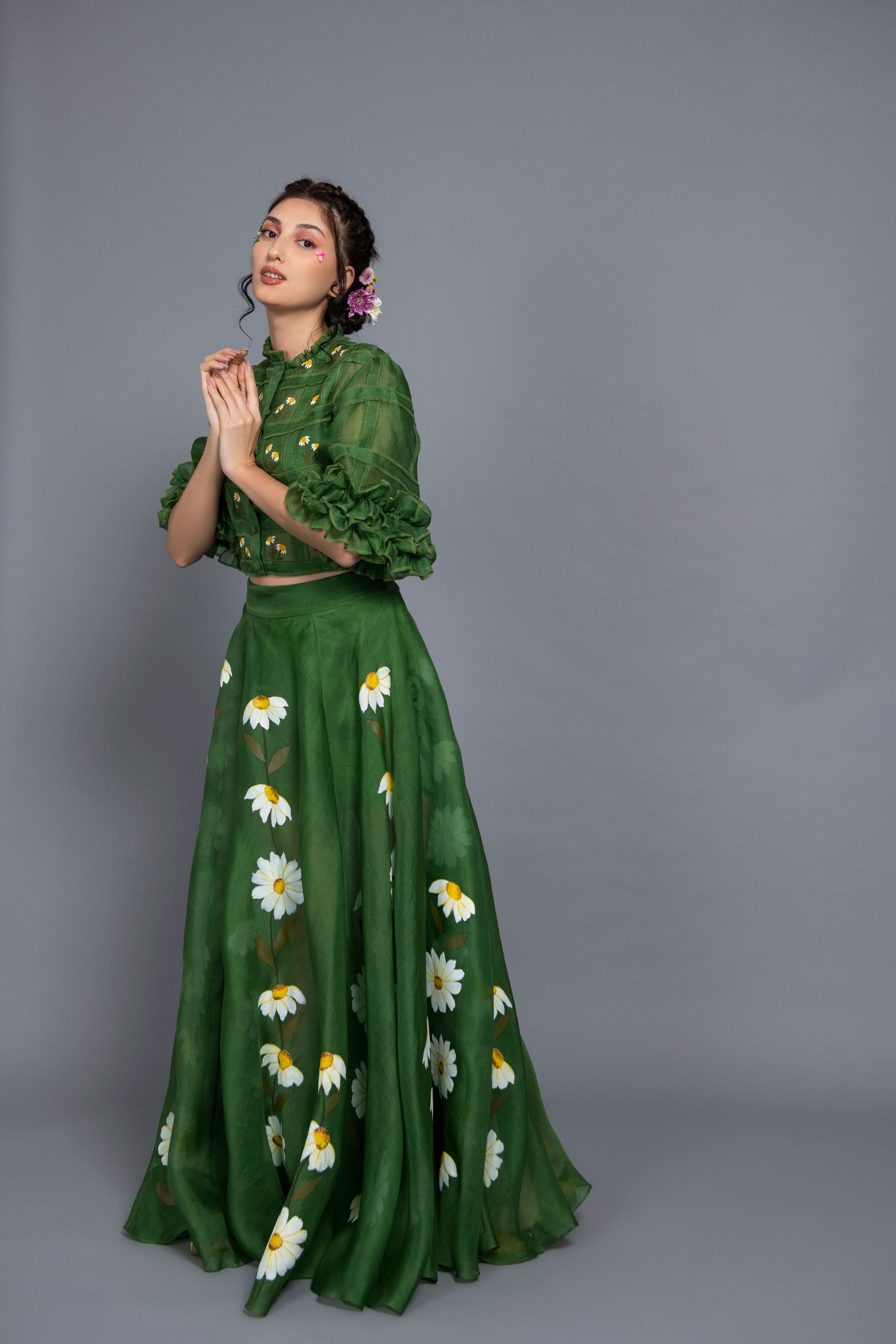 Daisy Green Organza Skirt Set