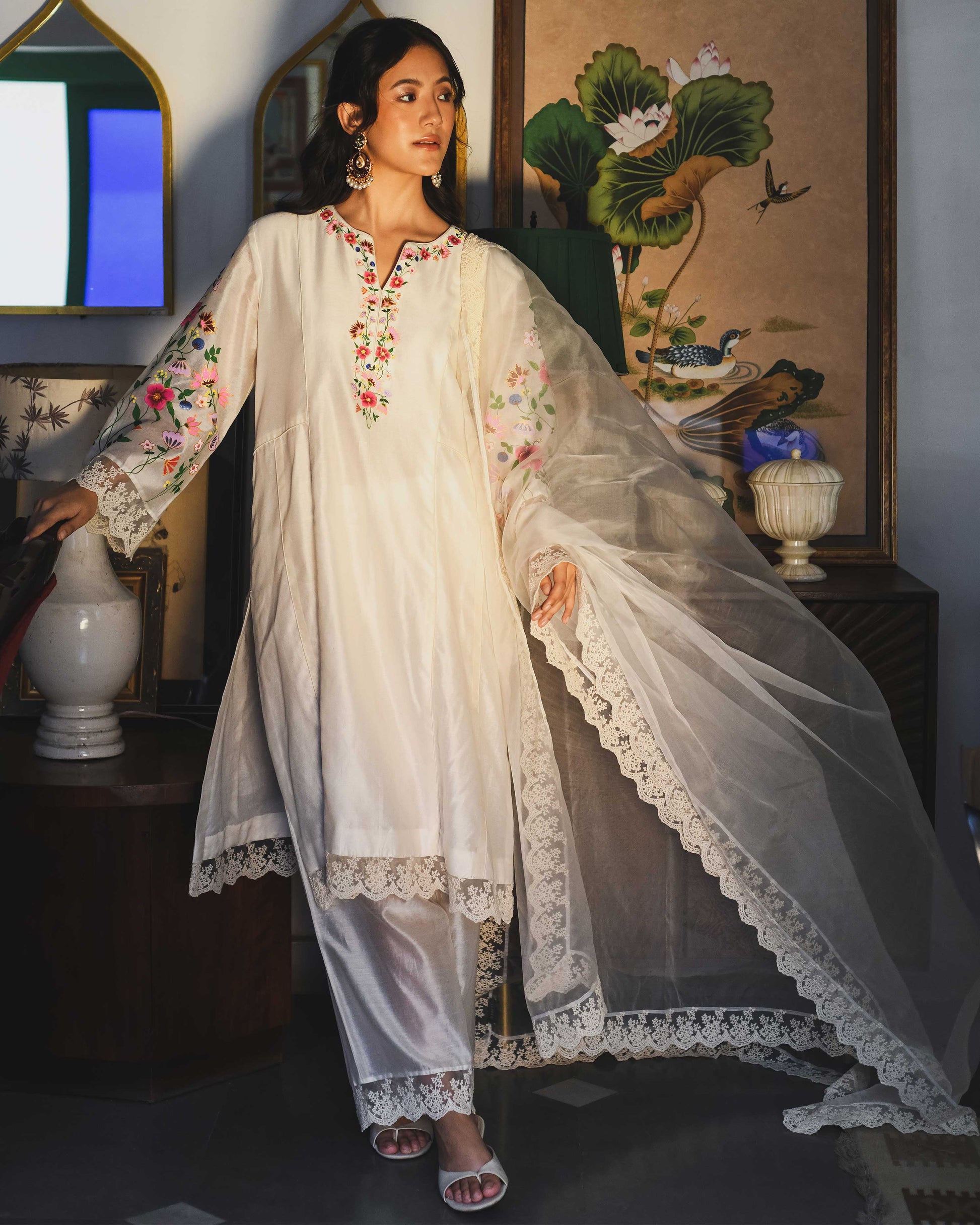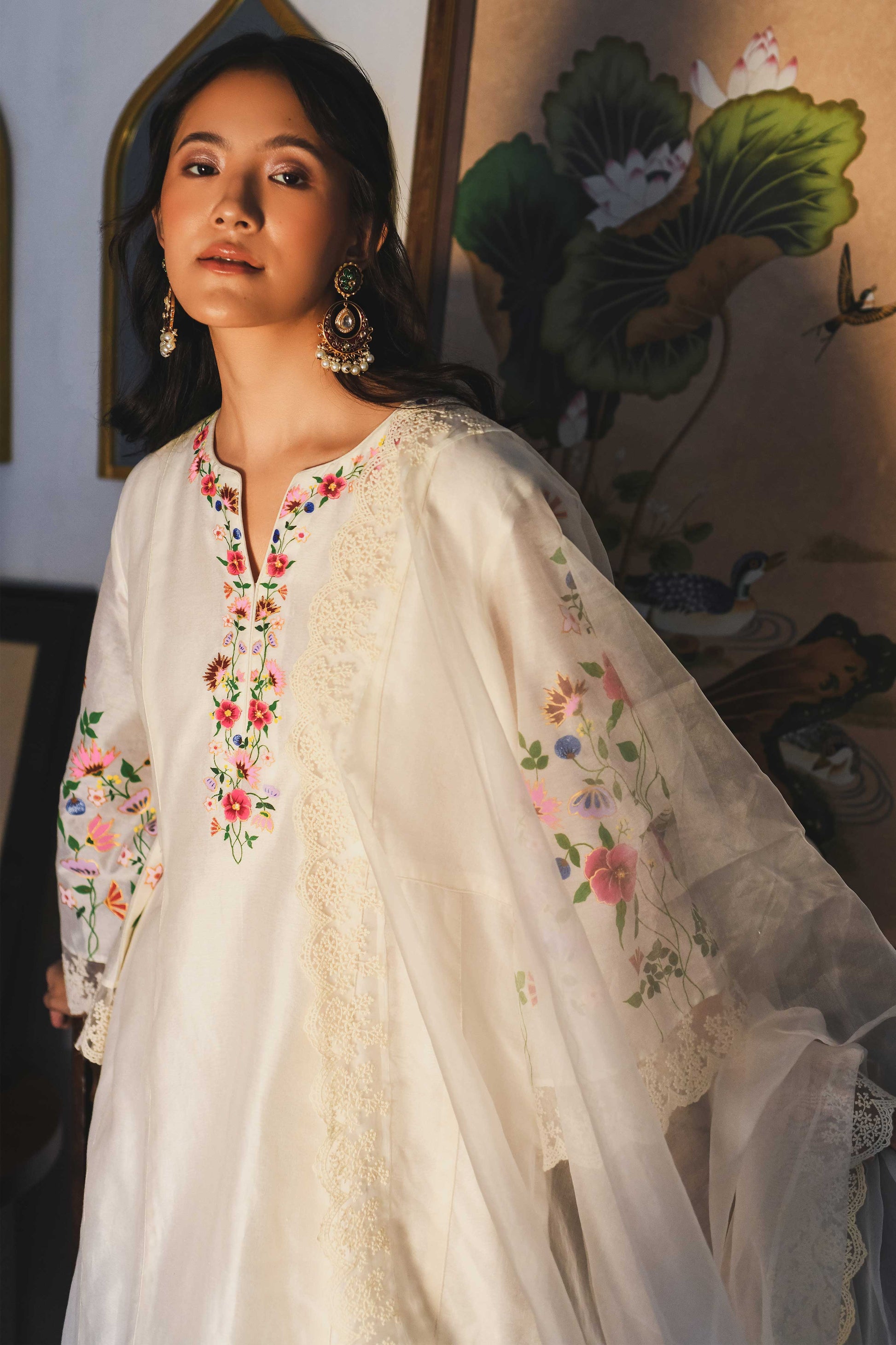 Details: Hand painted detailed floral on Kurta. Duppatta finished with lace.