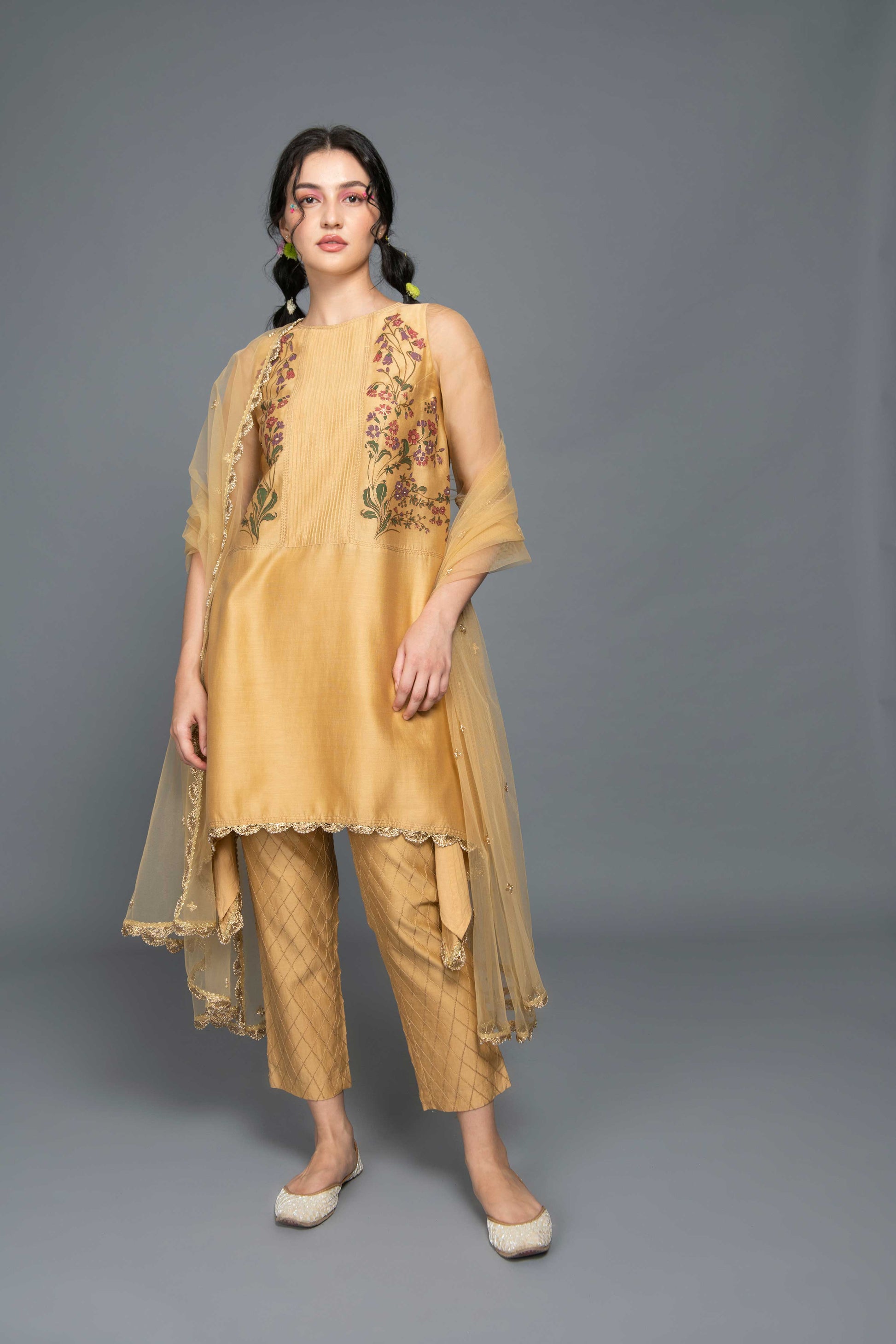 Fabric: Chanderi Kurta and Pants with Net Dupatta.