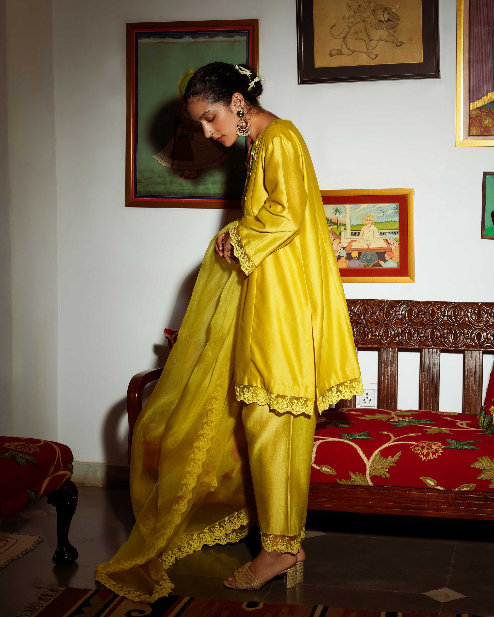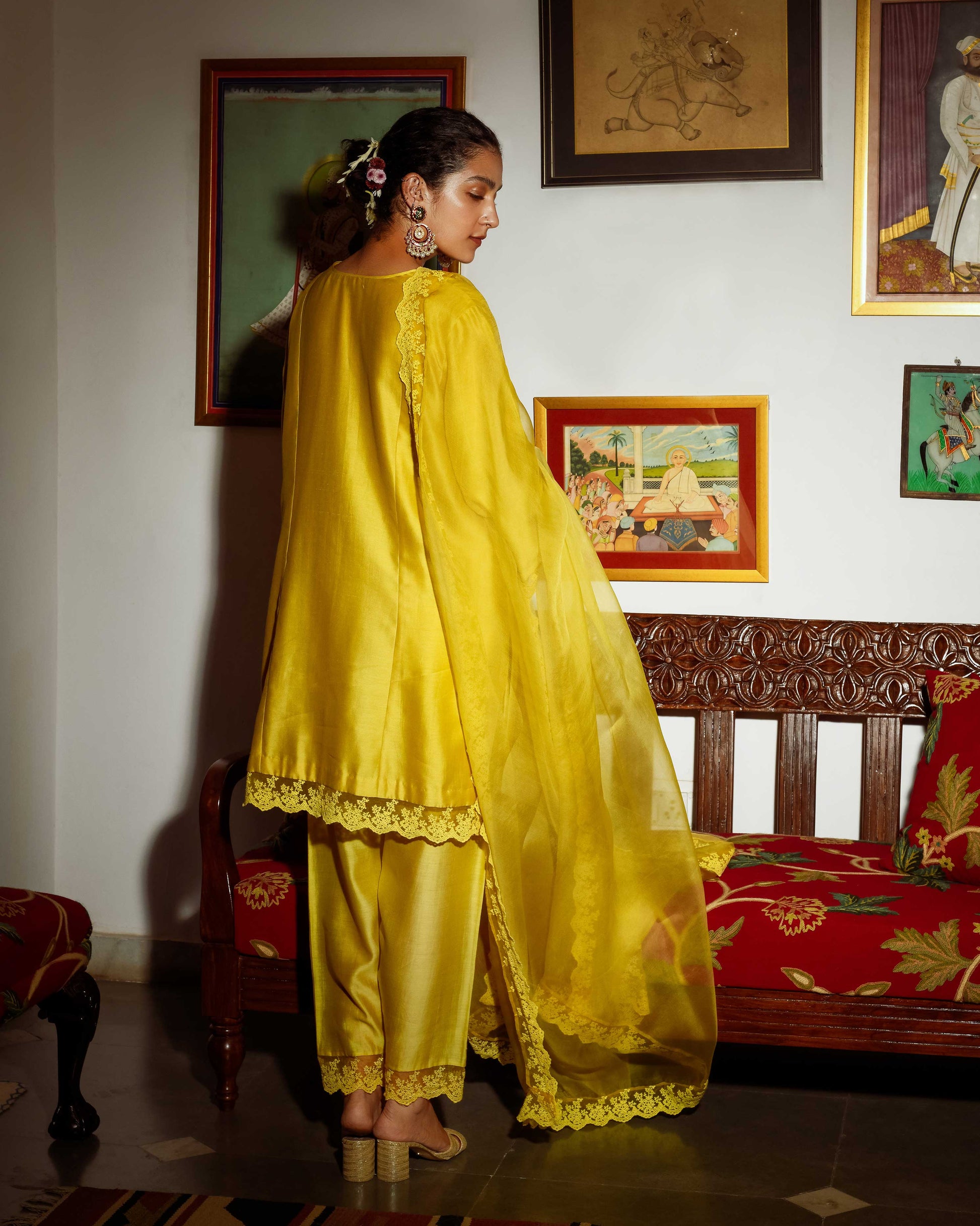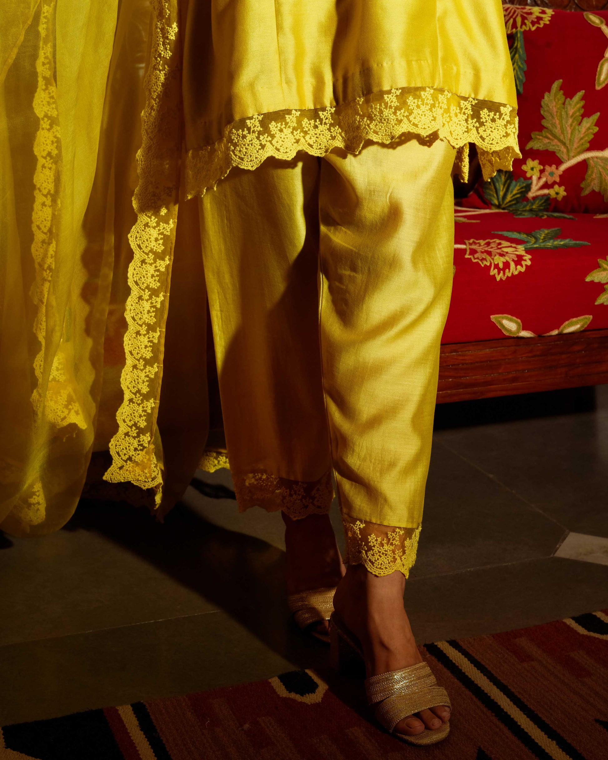Details: Hand painted kurta with hand embroidery highlight lace finishing on the hemlines and duppatta